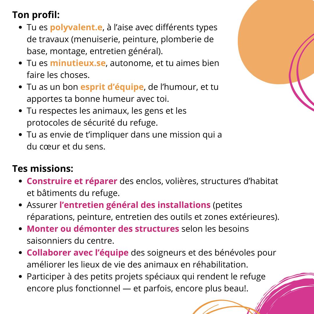 Ici, on travaille avec cœur, humour et respect — et chaque journée contribue à redonner une seconde chance à la nature.