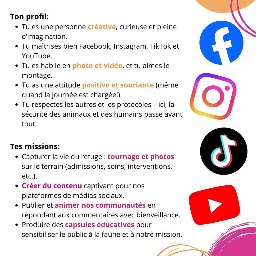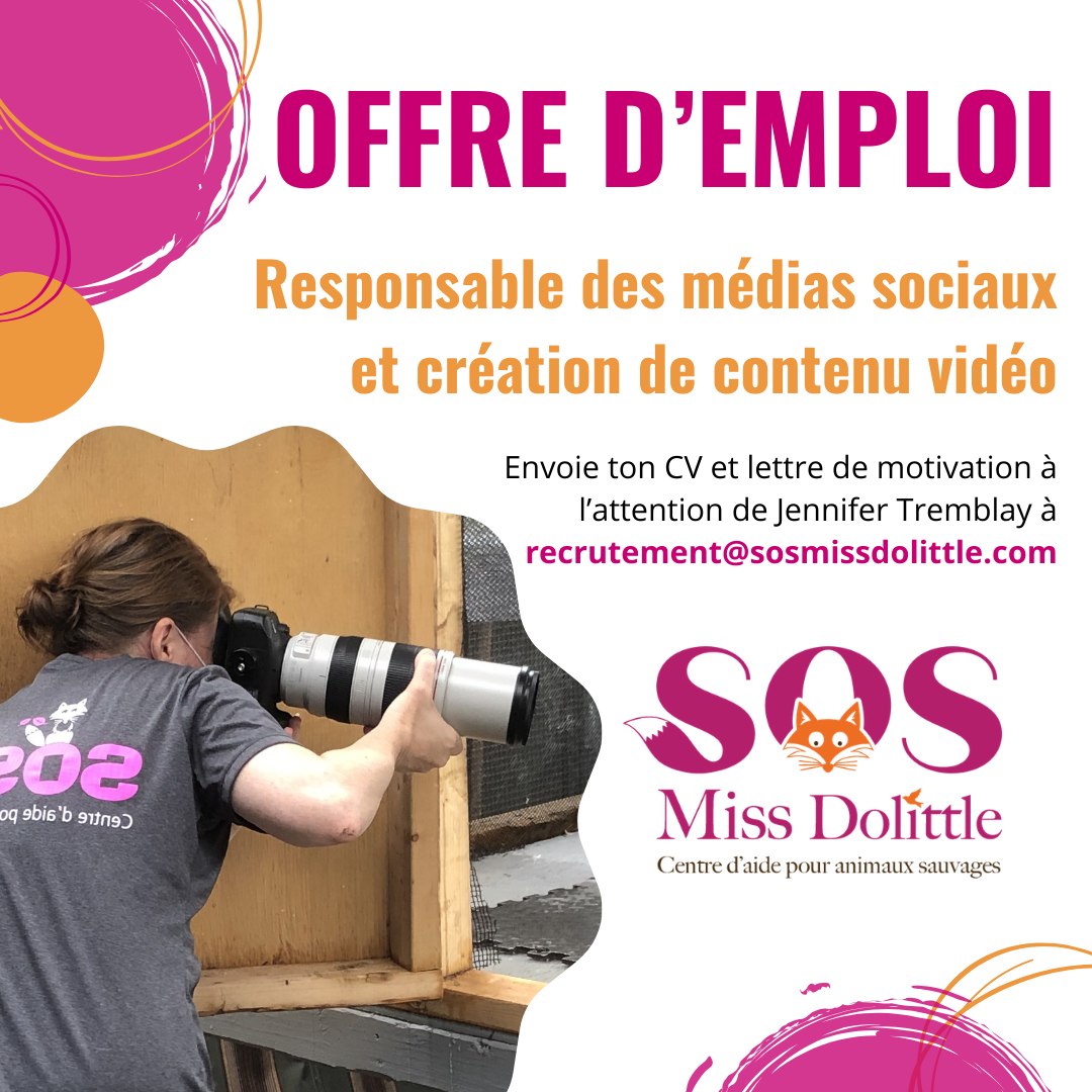 Si tu rêves d’un emploi où ta caméra, ton imagination, ton expertise en médias sociaux et ton amour des animaux font équipe chaque jour… cette offre est pour toi!