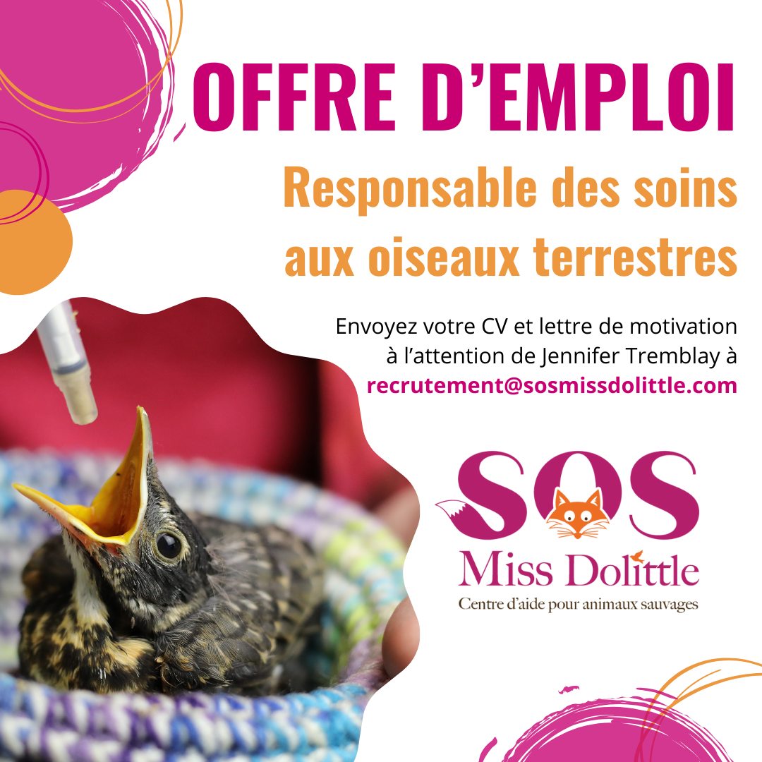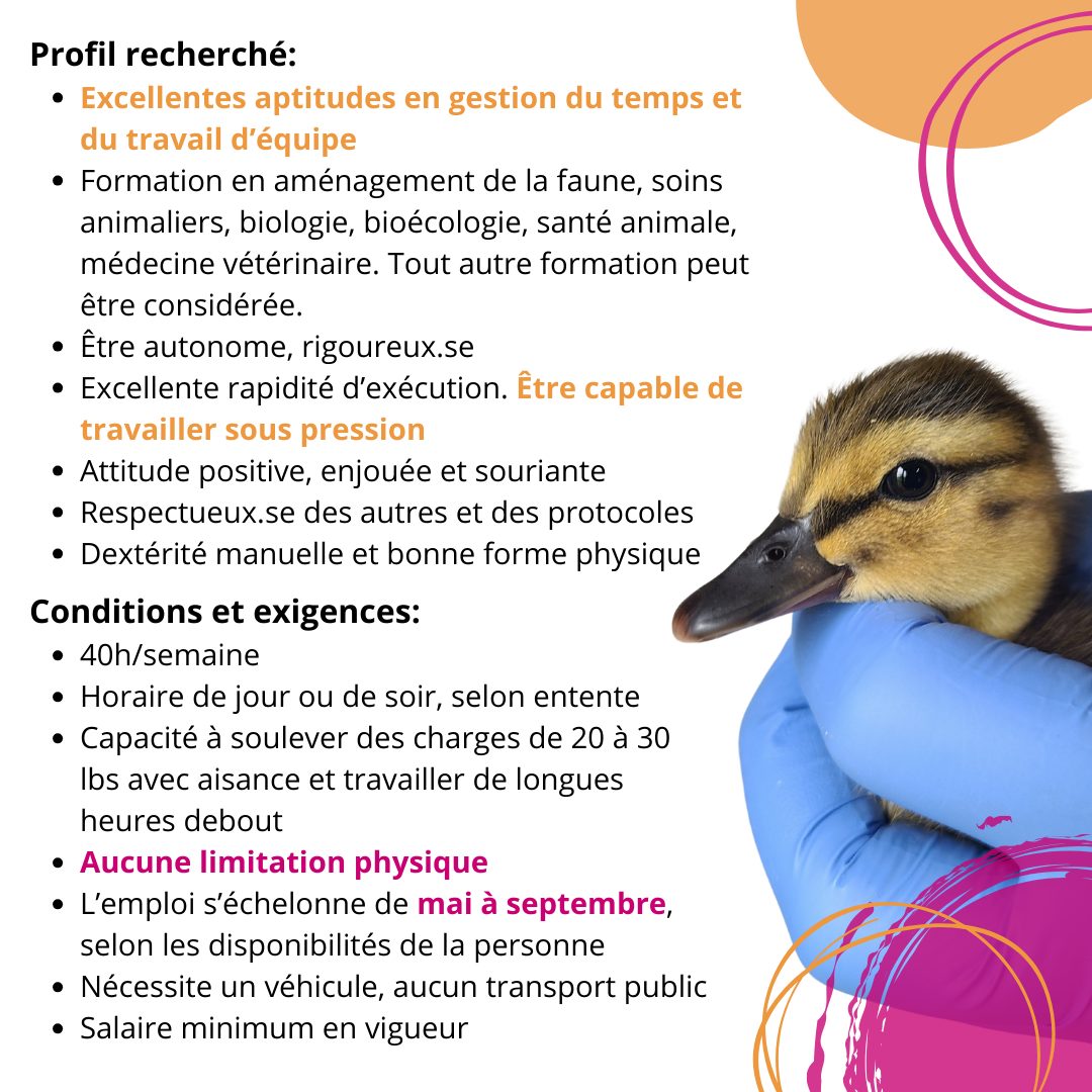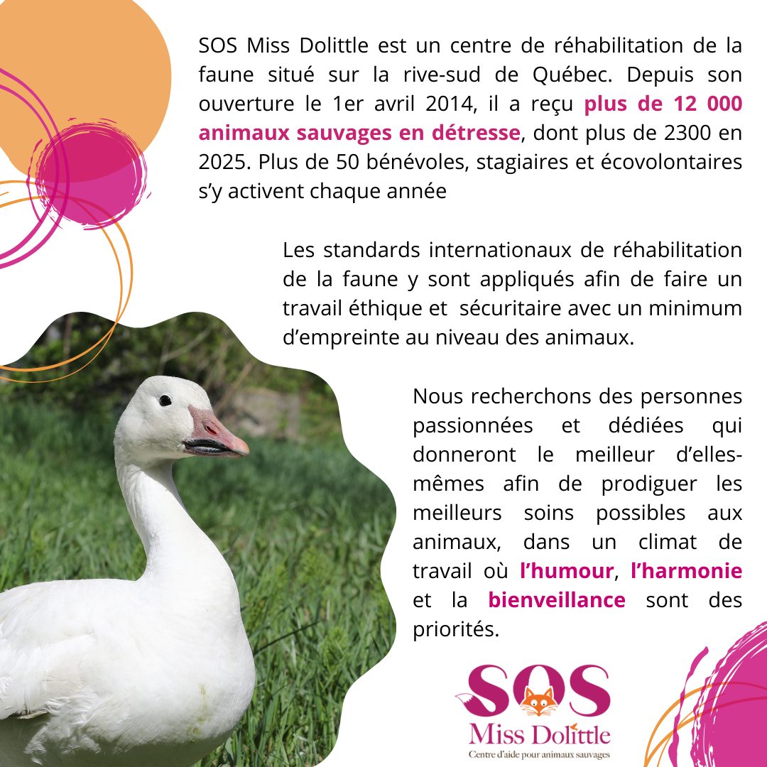 Viens prêter ton talent à une mission unique : aider à bâtir l’équipe qui prend soin des animaux sauvages blessés ou orphelins.
