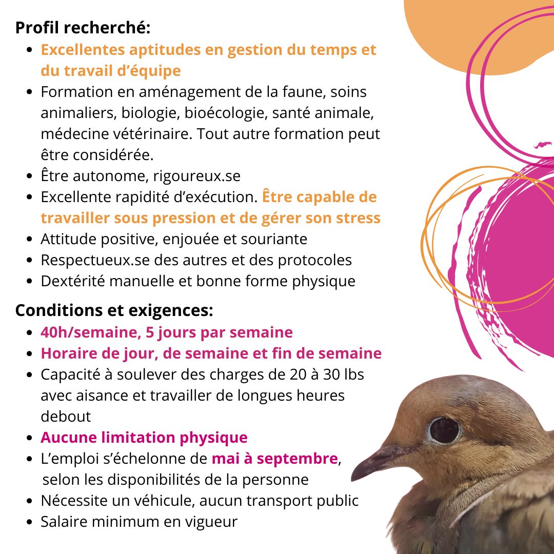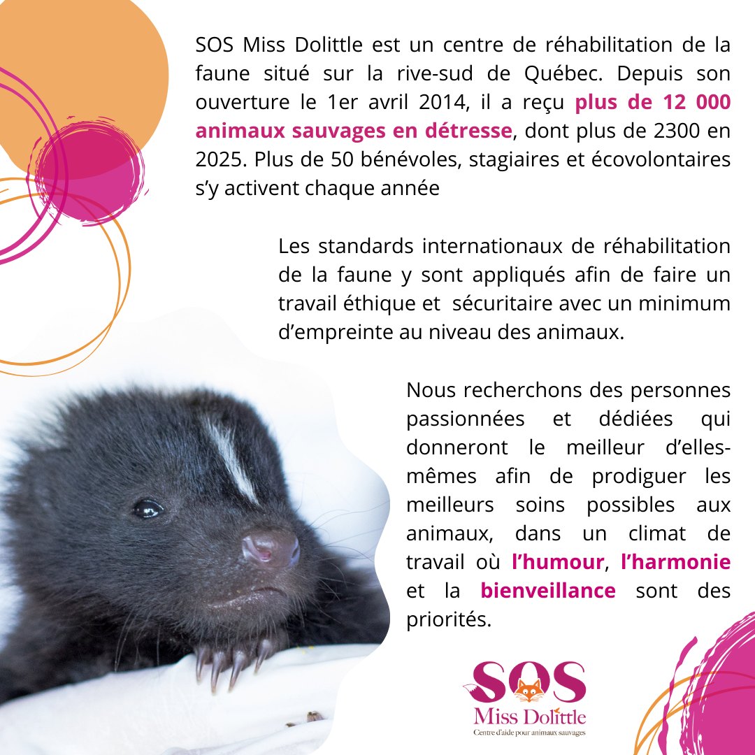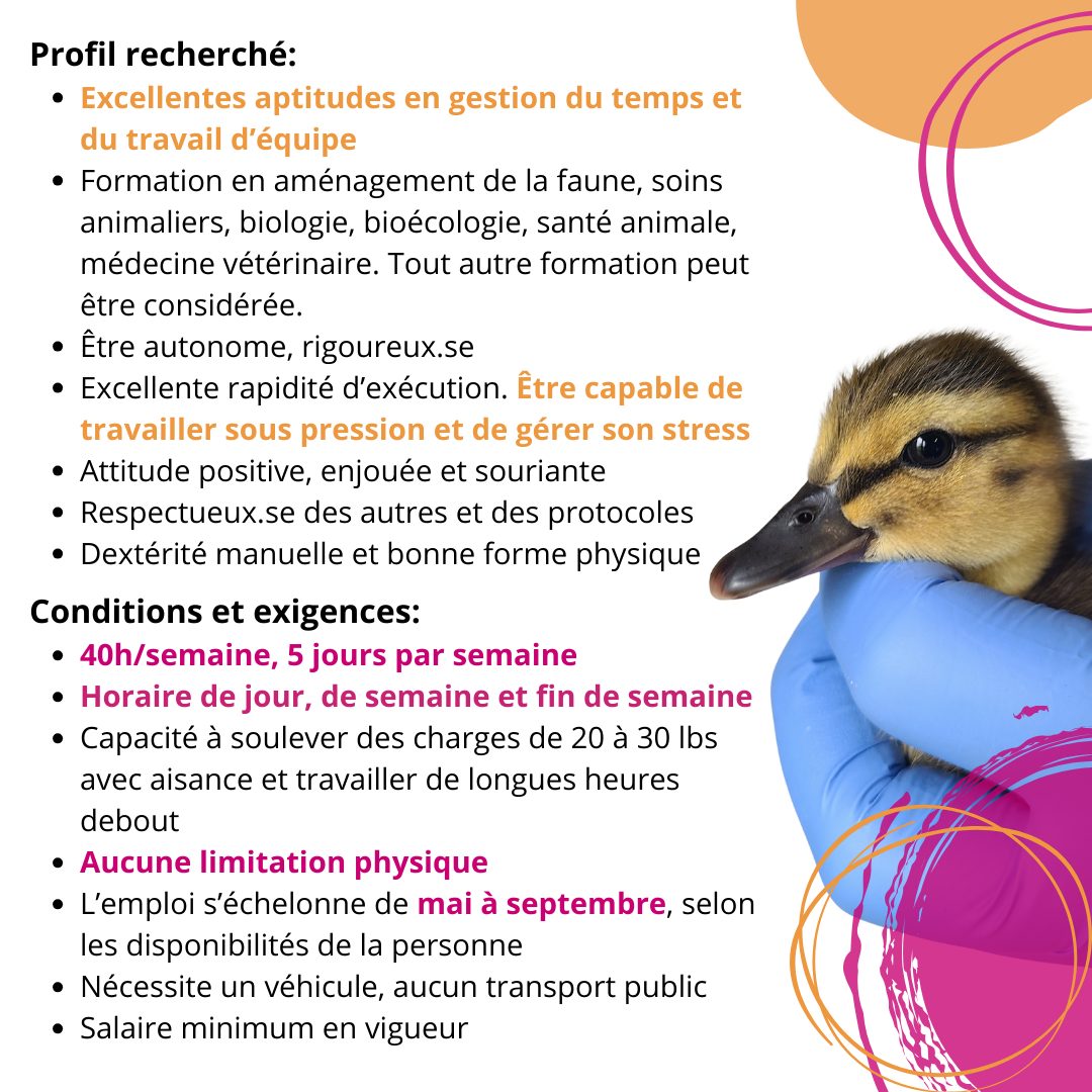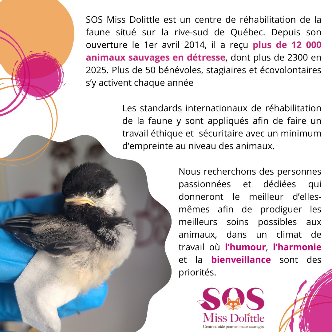 Viens prêter ton talent à une mission unique : aider à bâtir l’équipe qui prend soin des animaux sauvages blessés ou orphelins.
