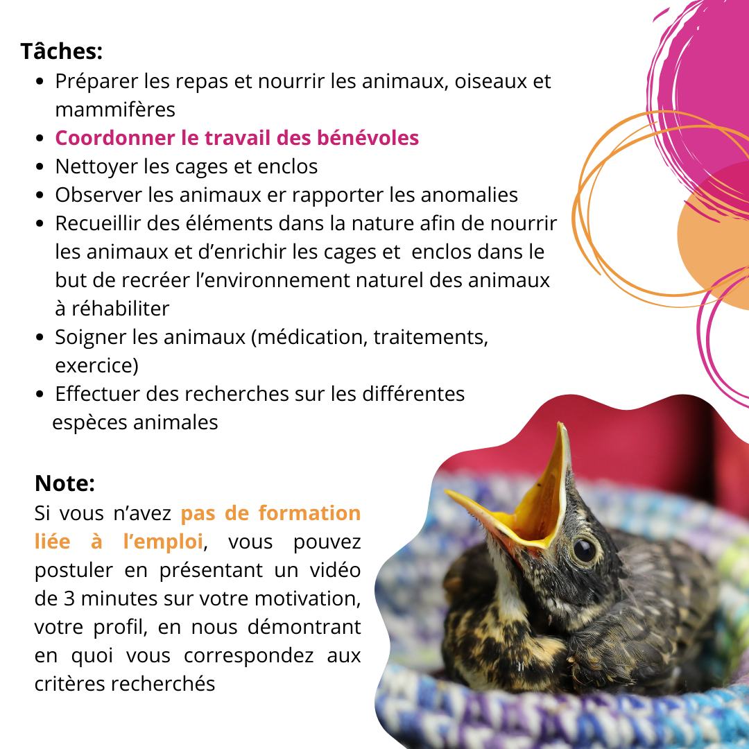✅ Responsable des soins aux oiseaux terrestres